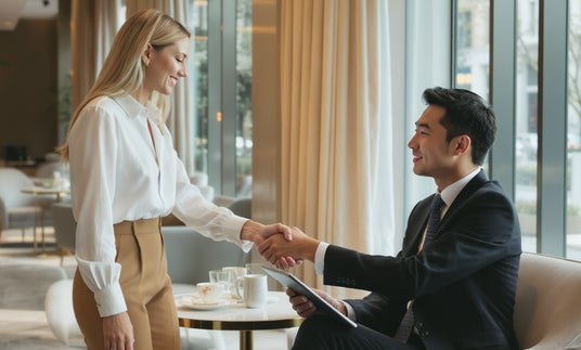 ホテルラウンジで初対面のビジネスパーソンと会話