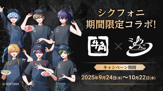 2.5次元タレントグループ「シクフォニ」と株式会社レインズインターナショナルが展開する焼肉チェーン「牛角」の初のコラボが決定いたしました。コラボを記念して、2025年9月24日(水)から10月22日(水)までの期間で牛角全店舗にてコラボキャンペーンを開催いたします。