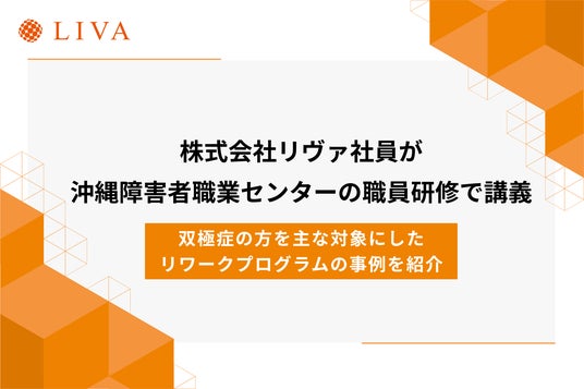メンタルヘルス不調者への社会復帰支援サービスを提供する株式会社リヴァの社員・二宮ひとみが、2025年9月17日(水)に独立行政法人高齢・障害・求職者雇用支援機構沖縄支部 沖縄障害者職業センターで行われる職員研修にて講師を務めます。