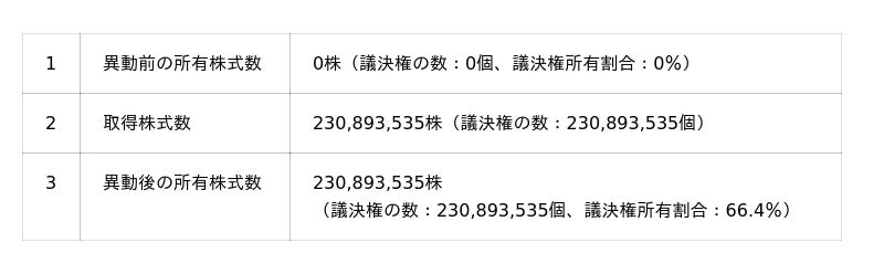 (注1)上記「Takeover Bid等による取得株式数及び取得前後の所有株式の状況」に記載の