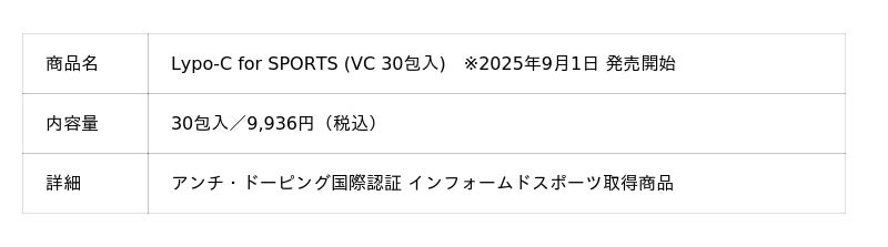 今回の取り組みでは、国際的アンチドーピング認証「インフォームドスポーツ」を取得した「Lypo-C for SPORTS」を、選手一人ひとりの体の状態や課題を事前にヒアリングし、さらに、当社提携クリニックにて定期的な血液検査などを実施し、得られた数値データを活用して健康とパフォーマンス向上をサポートします。
