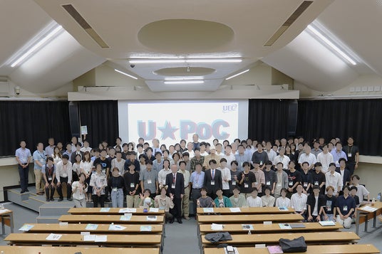 「U☆PoC(ユーポック)」は、既存の社会課題の解決や未来の豊かな暮らしに向けた、電気通信大学学生発の技術・サービスアイディアを競い、育てる実証コンテストです。優秀なチームには賞金が授与されるほか、プロトタイプ審査を経て最終成果発表会まで、約半年間にわたり多様な分野の専門家からアドバイスを受けながら、価値あるプロジェクトの実現を目指します。