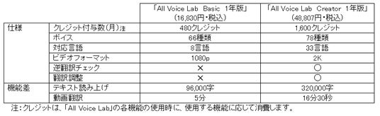 ソースネクスト株式会社(本社:東京都港区赤坂1-14-14 第35興和ビル4階 代表取締役社長:小嶋 智彰)は、9月16日(火)、弊社サイト上で、AI音声合成サービス「All Voice Lab Basic 1年版」(16,830円)、「All Voice Lab Creator 1年版」(48,807円)を発売いたします。(いずれも税込、オンラインコード版)。