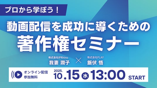 株式会社PLAY(本社:東京都渋谷区、代表取締役社長:黒田和道)は、2025年10月15日(水)13:00より、株式会社IPRhinoとの共催による無料オンラインセミナーを開催いたします。