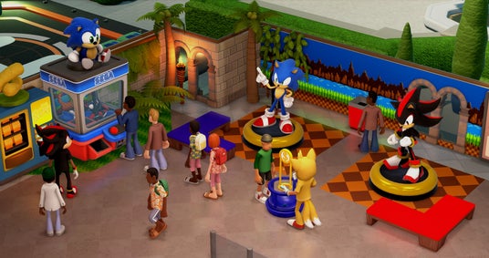 予約特典には、ソニックやシャドウになりきれるスタッフのコスチュームやゲーム内のお土産売り場で購入できるソニックのぬいぐるみ、壁紙、像などのミュージアムの装飾品まで、ソニック関連のさまざまなアイテムが含まれます。詳細は予約特典紹介トレーラーをご確認ください。