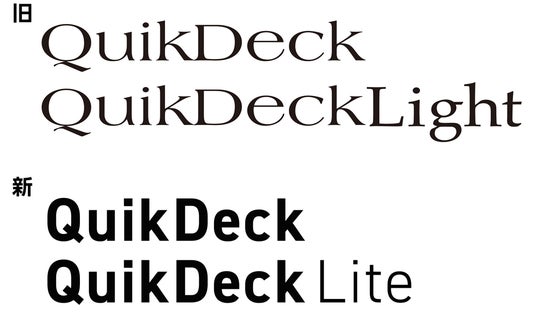 「クイックデッキライト」は「QuikDeck Lite」(Light→Lite)として綴りが新しくなります。また、ブランドロゴも刷新され、より親しみやすく、現場に愛される製品を目指して進化を続けてまいります。