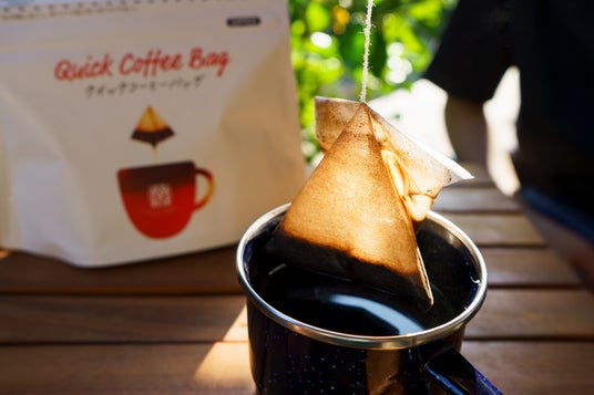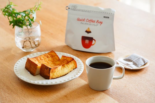 丸山珈琲にて販売しているコーヒーバッグは、はじめに少量のお湯で約30秒の“蒸らし”の時間と、そのあとにお湯を注いで浸した状態で約4分間、コーヒーが抽出されるまでに、5分程度時間を要します。このたび発売した「クイックコーヒーバッグ」は、お湯を注いでスプーンでかき混ぜるだけで飲めるため、抽出時間の大幅な短縮を実現いたしました。