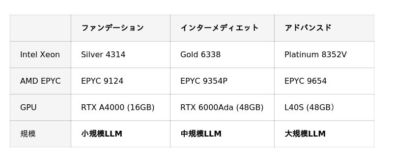 PGダイレクトで販売される標準モデルは、Intel Xeon CPUを搭載している3機種と、AMD EPYC CPUを搭載している3機種の計6機種となる。