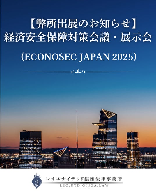 このたび弊所は、今年の9月30日(火)・10月1日(水)の2日間、池袋・サンシャインシティにおいて開催される、わが国最大の経済安全保障に関する先端的なカンファレンス「経済安全保障対策会議・展示会(ECONOSEC JAPAN2025)」に出展いたします。