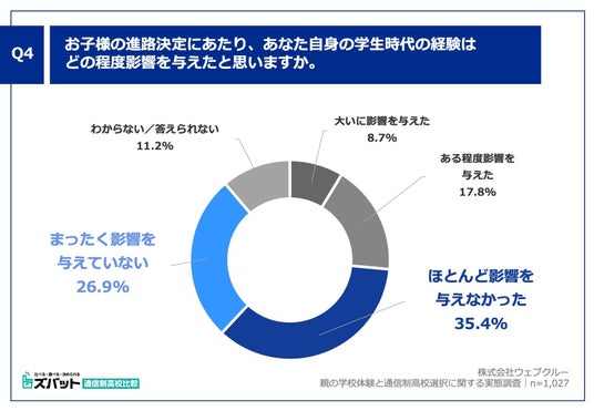 Q4. お子様の進路決定にあたり、あなた自身の学生時代の経験はどの程度影響を与えたと思いますか。