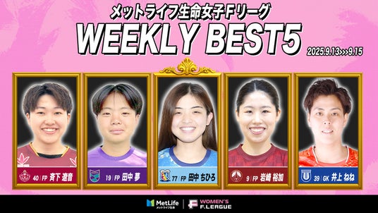 9月13日(土)~9月15日(月)に実施したメットライフ生命女子Fリーグ2025-26 第9・10節におけるベスト5をお知らせいたします。