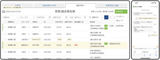 - 面会予定の可視化:朝の情報収集時点で1日の来訪が一覧化され、処置や検査とのバッティング回避が容易。
