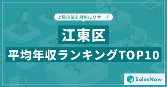 株式会社SalesNow(本社:東京都渋谷区、代表取締役:村岡功規、以下「当社」)は、国内540万社の企業情報を完全網羅した日本最大級のデータベース「SalesNow DB」より、上場企業を対象とした「市区町村別の平均年収ランキング」を発表しました。本リリースでは、各都市別のデータをもとに、今回は「江東区に本社を置く企業」を対象に、平均年収にフォーカスしています。