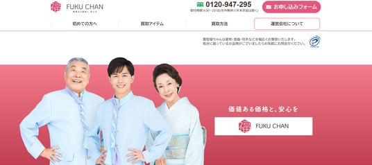福ちゃんは、「大切な想いをつなぐ」をコンセプトに買取サービスを展開する業者です。お客様満足度83%以上を誇り、メディア展開にも力を入れています。
