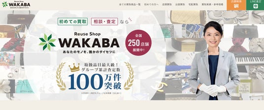 WAKABA(わかば)は、全国に250店舗を構える出張買取業者です。グループ累計査定数は100万件を突破しており、多くの実績があります。