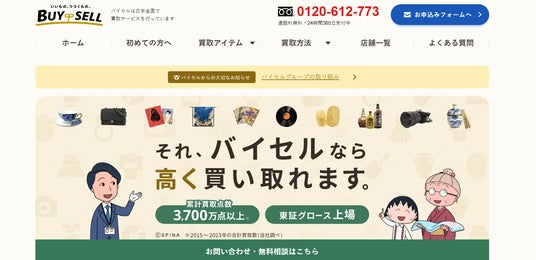 バイセルは、東証上場企業が運営する出張買取サービスです。これまでに累計3,700万点を超える商品を買い取った実績があります。