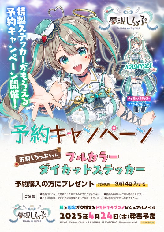 サイバーステップ株式会社は、本日2025年2月20日(木)より全国販売店の店舗にて、新作ADV『夢現しろっぷ - Dreamy Syrup -』の店舗予約受付が開始されたことをお知らせします。