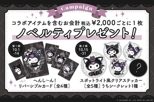 企画内容:先着で「クロミ」のコラボ商品・グッズを含む2,000円(税込)ごとのお買い上げで、限定