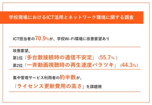 【GIGAスクール「その後」の壁】 ICT担当者の7割以上が学校現場のネットワーク環境を課題視。55.7%が「多台数接続時の通信安定性」を改善要望