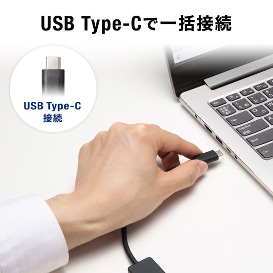 USB 5Gbpsポート、USB 2.0ポート、Type-C(USB2.0)ポート、SD/microSDカードリーダーを搭載しており、 最大4台までのUSB機器を接続できます。