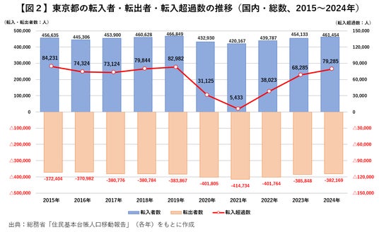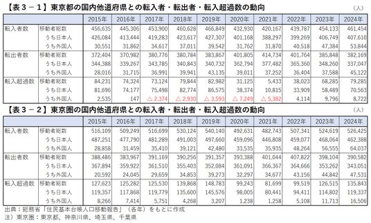 東京都に若年層約10万人の転入超過、子育て層の転出超過ほぼ収まる