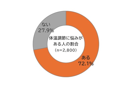 ●72.1%の人が「体温調節の悩み」を感じていることが明らかに/「寒暖差による不調」がトップ