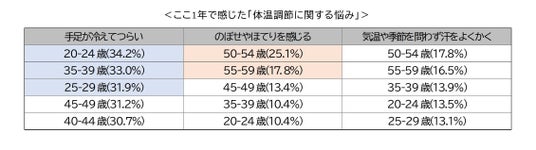 厳しい残暑と寒暖差が気になる季節に向けて「体温調節」における女性の身体の曲がり角を調査