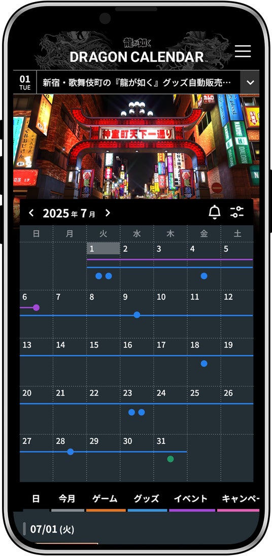 『龍が如く』シリーズの最新のイベントやグッズ情報がチェックできるWEBカレンダー「DRAGON CALENDAR」公開!総勢100名以上の登場キャラクターの誕生日も明らかに!