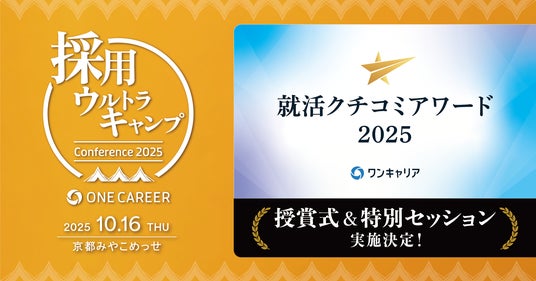 採用支援サービス「ワンキャリア」を展開する株式会社ワンキャリア(本社:東京都渋谷区、代表取締役社長 執行役員CEO:宮下 尚之、以下「ワンキャリア」)は、2025年10月16日(木)に京都市勧業館 みやこめっせ(京都府京都市左京区)で開催される当社初の採用担当者向け大型カンファレンス『採用ウルトラキャンプ』で開催する、「ワンキャリア就活クチコミアワード2025」受賞企業によるセッションプログラムを公開しました。また、同日には授賞式も開催し、全5部門50社を表彰します。