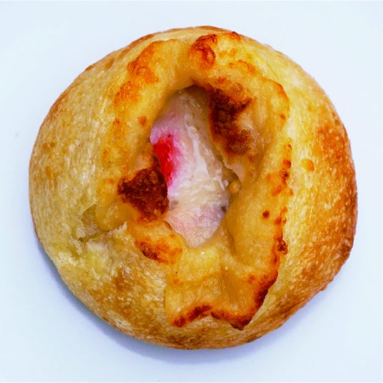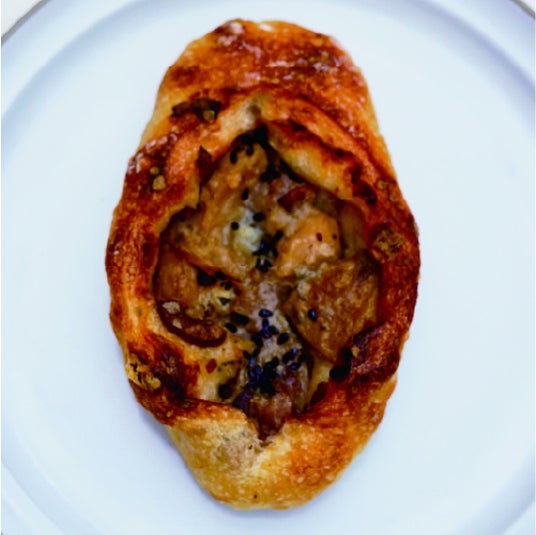 アリゴとは、マッシュポテトにチーズなどを加えることで餅のように滑らかに伸びる濃厚な味わいのフランス家庭料理。今回は甘みが特徴の男爵いもをベースに、グリュイエールチーズ・生クリーム・ニンニクを加えて仕上げました。フルーティーな味わいの赤パプリカとベーコンをアリゴに合わせ、粉の甘みを活かした仕込み法が自慢の”湯種バゲット”生地で包み香ばしく焼き上げています。クリーミーな味わいの中に赤パプリカの食感がアクセントになり、贅沢で満足感のある一品です。