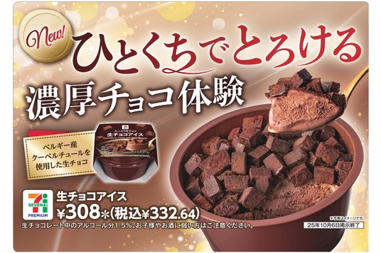 株式会社セブン‐イレブン・ジャパン(本社:東京都千代田区、代表取締役社長:阿久津 知洋)は、プライベートブランド「セブンプレミアム」より、「セブンプレミアム 生チョコアイス」と「セブンプレミアム ワッフルコーン チョコ&ミルク」を、全国のセブン‐イレブンで9月23日(火)から数量限定で順次発売します。