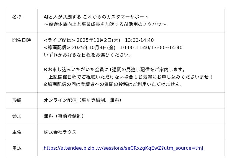 TMJ、株式会社ラクス主催ウェビナー 「AIと人が共創する これからのカスタマーサポート」に登壇