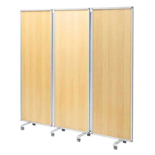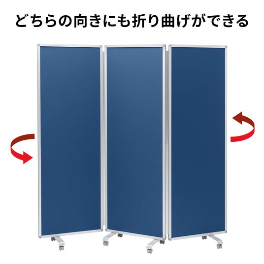 幅60cmのパネルが3枚連結された、キャスター付きのパーティションです。角度を変えたり折りたたんだりすることで、シーンに応じて空間を自由自在にレイアウトできます。