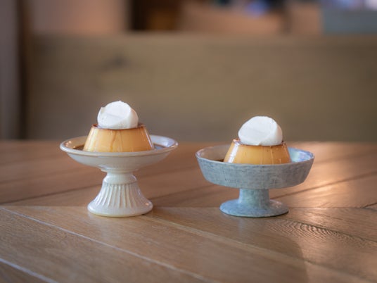 さらに今回のプリンは、駿府の工房 匠宿の陶芸工房「工房 火と土」で制作された器でご提供いたします。選考会を実施し、その中から選び抜かれたもののみをさらにブラッシュアップし採用しました。ひとつひとつ異なる表情を持つ器が、プリンの美味しさを引き立てます。