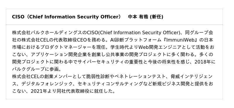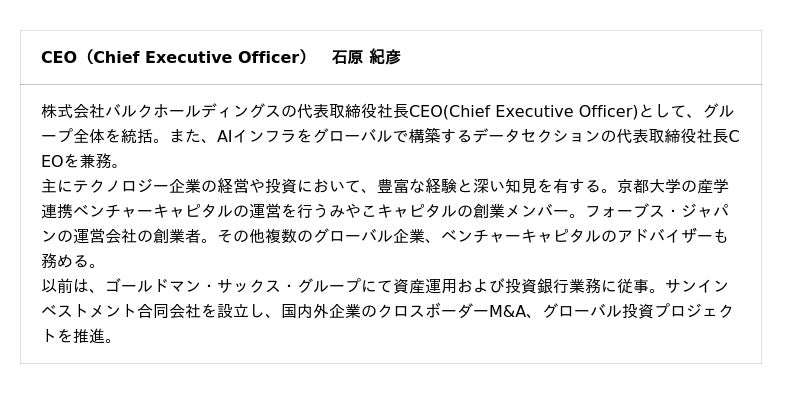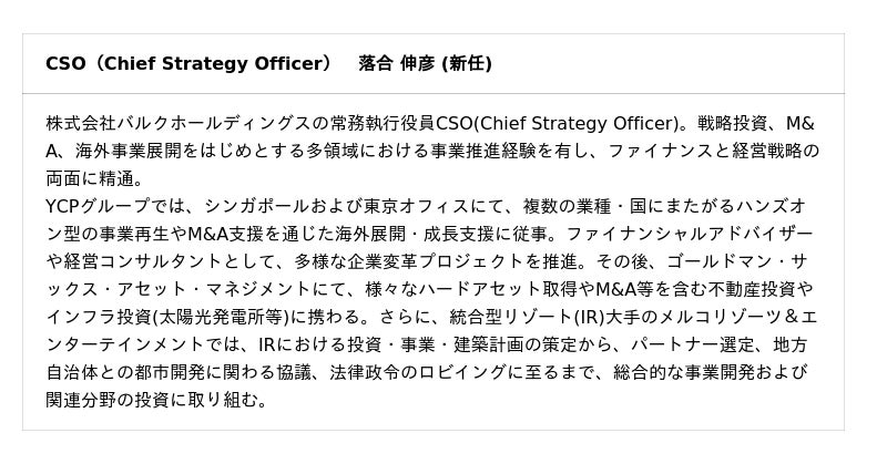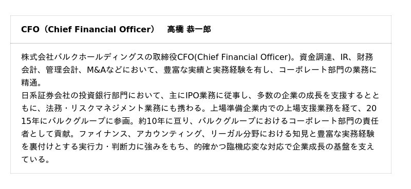株式会社バルクホールディングス 新経営体制発足のお知らせ