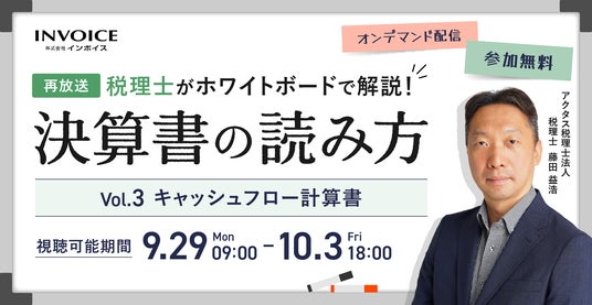 約16,000社に対して通信費や水道光熱費などの一括請求サービス「Gi通信」「OneVoice公共」を提供する、株式会社インボイス(代表取締役:加茂 正巳 本社:東京都千代田区)は、アクタス税理士法人(代表:粕谷 直人 本社:東京都港区)の藤田 益浩氏にご登壇いただいた「税税理士がホワイトボードで解説!決算書の読み方 Vol.2 貸借対照表編」の再放送を期間限定のオンデマンドセミナー形式で配信することをお知らせ致します。