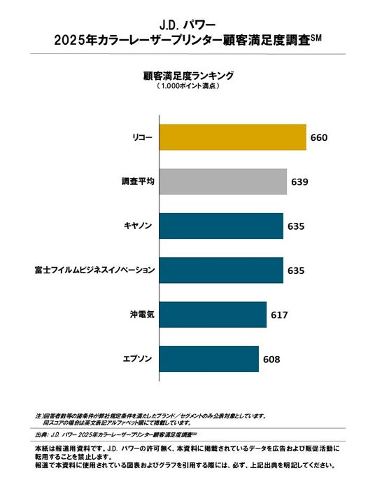CS(顧客満足度)に関する調査・コンサルティングの国際的な専門機関である株式会社J.D. パワー ジャパン(本社:東京都港区、CEO:木本卓、略称:J.D. パワー)は、2025年カラー複合機顧客満足度調査および2025年カラーレーザープリンター顧客満足度調査の結果を発表した。