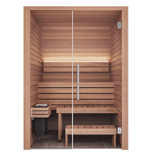 ガラス面に耐熱強化ガラスを使用することで、熱を逃がさず、機能性とデザイン性の両立を実現。最高温度は110度、ロウリュも可能な本格仕様となっています。