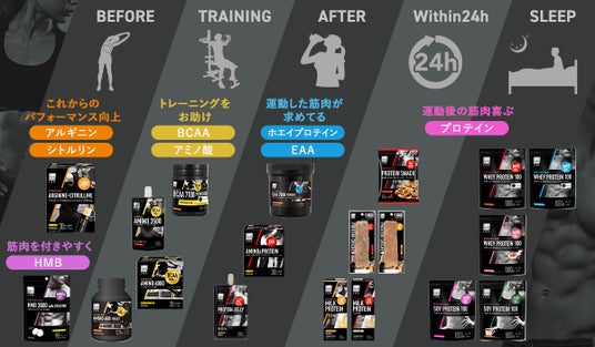 今回のラインナップ拡充により、一連のトレーニングをバックアップするアイテムが豊富に揃ったことでストイックにトレーニングする方やプロのアスリートの方を全方位でサポートします。