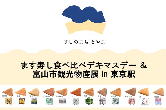 2025年9月27日(土)、東京駅地下1階イベントスペース「スクエアゼロ」にて、富山の魅力を一堂に集めたイベント「ます寿し食べ比べデキマスデー & 富山市観光物産展 in 東京駅」を開催いたします。