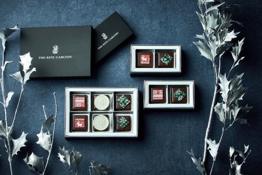 ザ・リッツ・カールトン東京定番のホームメイドチョコレートが、クリスマス限定デザインで登場します。ラズベリー、オレンジジンジャーブレッド、カライブ、3種の期間限定フレーバーをお楽しみください。(「オレンジジンジャーブレッド」は6個入りのみ)