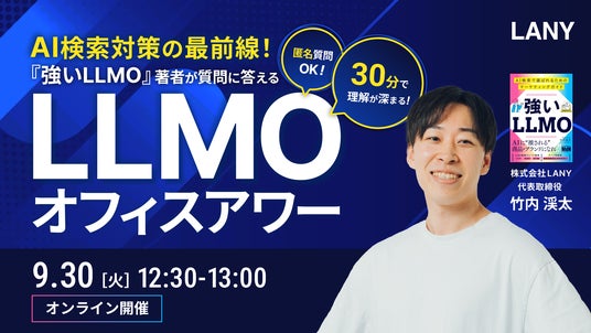 デジタルマーケティング支援事業を展開する株式会社LANY(本社:東京都渋谷区、代表取締役:竹内渓太)は、三冊目の著書となる書籍『強いLLMO AI検索で選ばれるためのマーケティングガイド』をエムディエヌコーポレーションから2025年9月26日(金)に出版します。