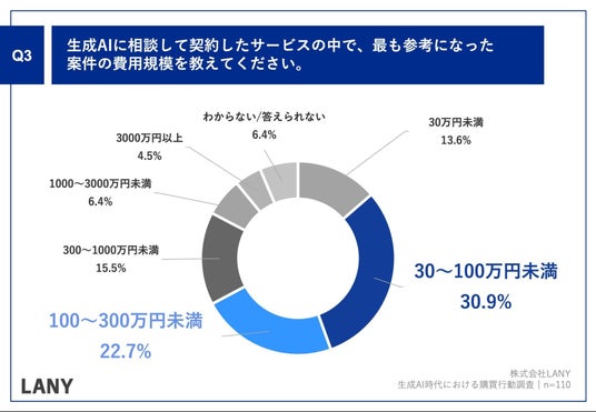 生成AIに相談して契約したサービスの中で、最も参考になった案件の費用規模は、「30~100万円未満」(30.9%)