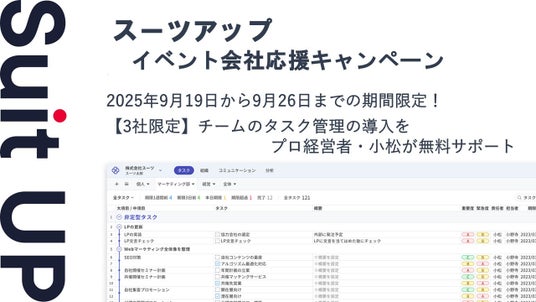 チームのタスク管理・プロジェクト管理ツール「スーツアップ」、イベント会社応援キャンペーン