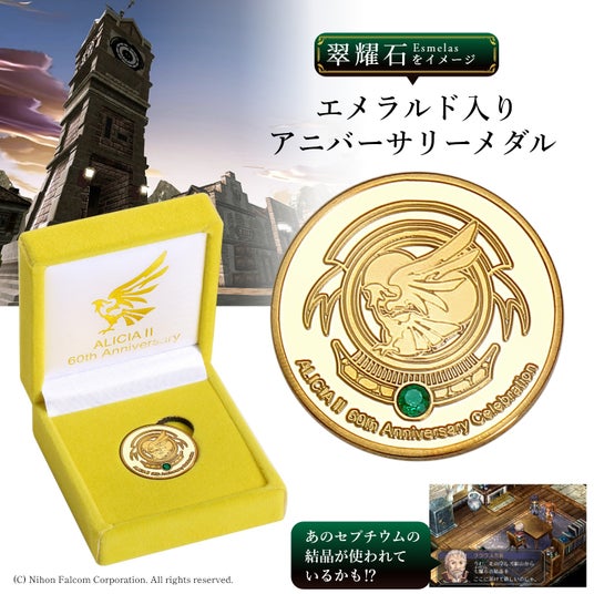 翠耀石(エメラルド)をあしらったアニバーサリーメダル