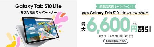 サムスン電子ジャパン株式会社(以下サムスン)は、お手軽に映像視聴、創造性、生産性をあらゆる場面で高めるAIタブレット「Samsung Galaxy Tab S10 Lite」をau Online Shopにて本日9月19日(金)より販売を開始いたします。