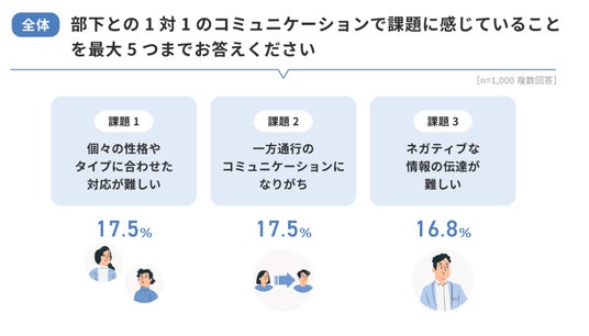 リモート環境では、一人ひとりの性格や仕事のスタイルに合わせた対応が難しくなります。特に「一方通行になりやすい」「ネガティブな情報を伝えにくい」といった理由から、部下との十分なコミュニケーションが取れず悩む上司が増えていることが明らかになりました。