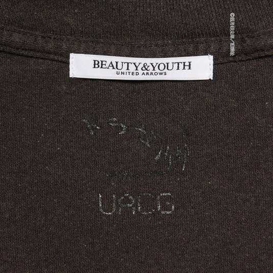 カバービジュアルのグラデーションは網点で表現し、表紙の質感を再現するために、一部にハイメッシュの厚塗りシルクスクリーンプリントを採用。凹凸感のある立体的な仕上がりが特徴です。シルクスクリーンならではの経年変化による風合いの変化も楽しめる、永く愛用いただける一枚。ボディの加工に馴染むよう細部を調整し、ヴィンテージライクな風合いを追求しました。