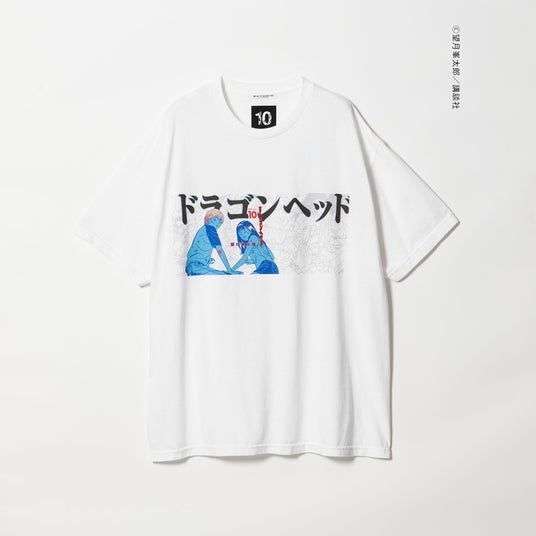 Tシャツには、最もインスピレーションを受けた全10巻のカバービジュアルを使用。原画データが現存していなかったため、望月峯太郎氏が本企画のためにリマスターを実施。Tシャツのボディにあわせてヴィンテージ風の加工を施すなど、氏自らの提案によって、今回限りの特別なビジュアルが完成しました。また、表紙のデザインを忠実に再現するべく、ボディはカバーデザインにあわせた染めを行い、プリントはシルクスクリーンの多色手刷りとインクジェットで色の奥行とグラデーションを表現しました。全型それぞれのタグ部分には、作品の巻にあわせたドラゴンヘッドのロゴをプリントするなど細部までこだわった仕様です。