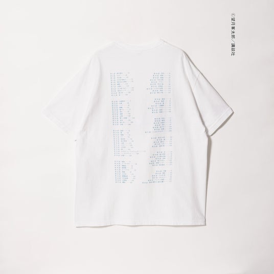 フロントのビジュアルは手刷りのシルクスクリーンプリント10版を用いて、色やグラデーション、細かい線などを忠実に再現。背面には、全話のタイトルをシルクスクリーンでプリントしました。99点限定で1点ずつシリアルナンバー入り。完全オリジナルのブリスターパックは壁掛け・自立両対応で、フィギュアやコレクターズアイテムのような高揚感を演出する仕様に。“着ることもできるけど、あえて飾りたくなる”、特別な1枚です。